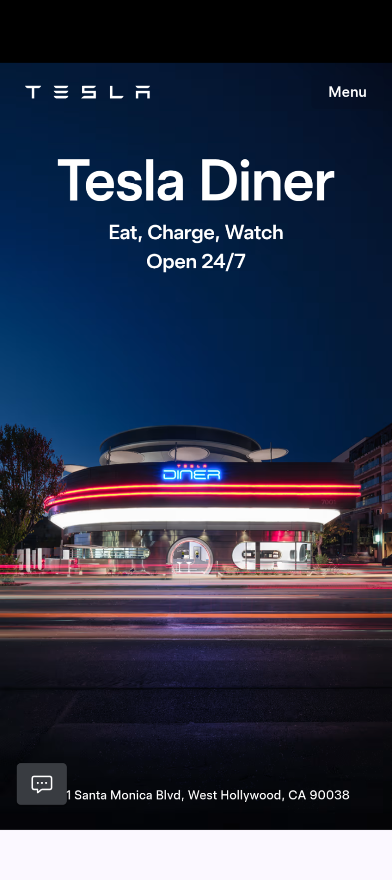 Tesla Diners. Open 24/7.